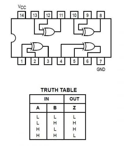 La Compuerta XOR o SN74LS86N es un circuito integrado que incorpora cuatro compuertas OR exclusivas con dos entradas. Realizan las funciones booleanas en lógica positiva. Una aplicación común es como un elemento complemento/verdadero.